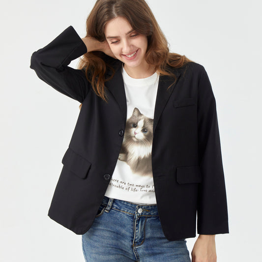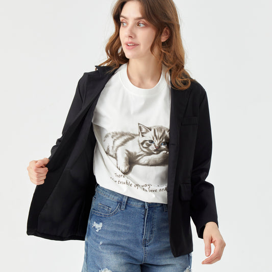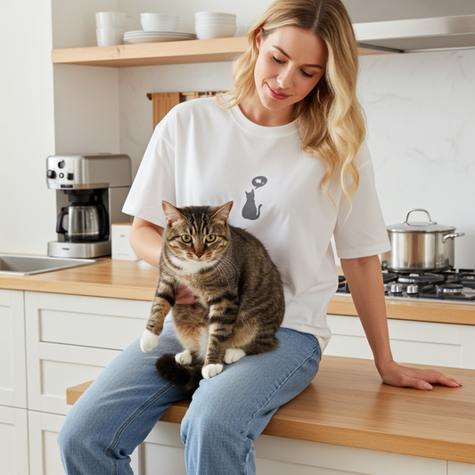 "We absolutely adore this T-shirt! The charming cute cat print, with its clean lines and clever mouse design, is even better in person. Crafted from a super-soft cotton, the shirt feels amazing and offer a perfectly relaxed, non-baggy fit. For any fellow cat enthusiasts, this shirt is a must-have!"