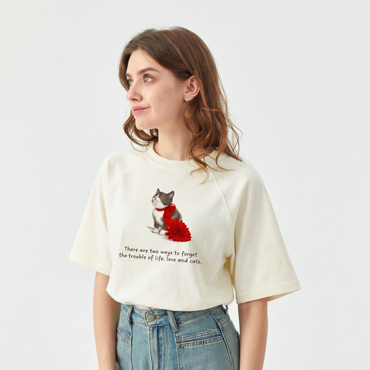Fashion with a Cause: Cat-Themed Casual Wear Advocating Mental Wellness.