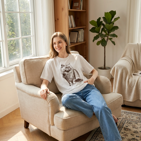 So Cute & Comfy! Love this tee! The fluffy cat graphic is adorable, and the fabric is super soft. Fits true to size and feels great for everyday wear. Total win for cozy vibes and fun style