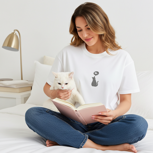 "We absolutely adore this T-shirt! The charming cute cat print, with its clean lines and clever mouse design, is even better in person. Crafted from a super-soft cotton, the shirt feels amazing and offer a perfectly relaxed, non-baggy fit. For any fellow cat enthusiasts, this shirt is a must-have!"